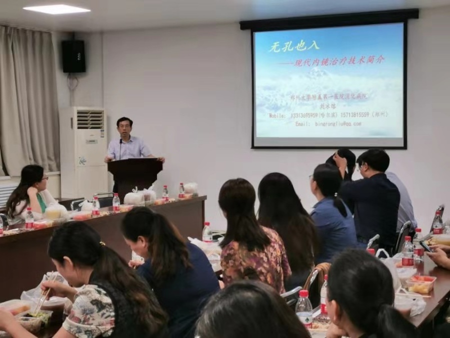 会上,各支社对祖国70年巨变做了回顾,并结合相关科研成果进行了学术交流。本次活动共做了四个专题学术交流,分别是刘冰熔的《现代消化内镜治疗技术简介》、董刚的《甲状腺乳头状癌的消融治疗》、秦红霞的《口腔健康 全身健康》和闫波的《口腔CBCT在口腔临床诊断及科研中的应用》,大家认真倾听,热烈讨论,共同进行了分享与学习。
