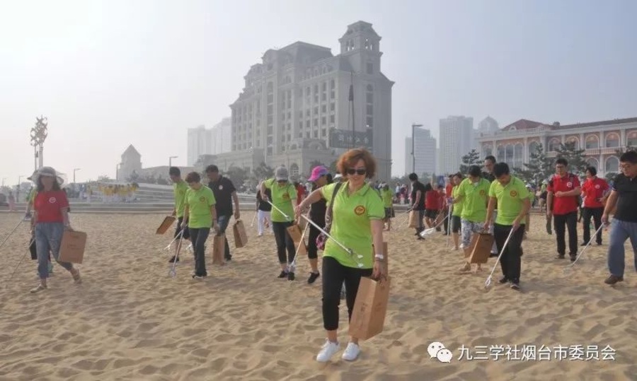 7月13日,九三学社烟台市委在开发区金沙滩举行了首次“洁净沙滩”环保公益活动。九三学社社员及家属,芝罘区道德先锋志愿队成员及其他群众300余人冒着炎炎烈日,仔细清理瓶盖、塑料片、短绳、铁丝等沙滩垃圾。此后,全市社员积极响应九三学社烟台市委号召,并带动家属朋友,利用各种机会主动宣传海滩垃圾危害、自觉清理海滩垃圾,努力创造清洁优美的环境。