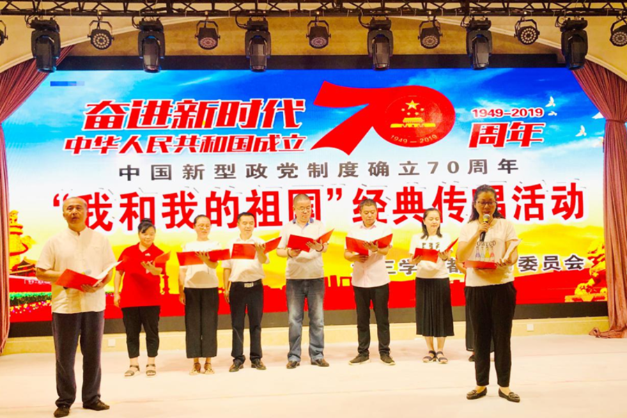 文艺演出紧扣歌颂中华人民共和国成立70周年和中国新型政党制度确立70周年的主题。九三学社都匀市委领导班子成员及老领导一起合唱了歌曲《不忘初心》,卫生支社、教育支社、综合支社等先后表演了独唱《二月里来》、诗朗诵《我骄傲,我是中国人》、合唱《我的中国心》《团结就是力量》《走进新时代》,最后,全体社员和嘉宾一起唱响《我和我的祖国》,喜迎祖国盛世华诞。(九三都匀市委 陆明)