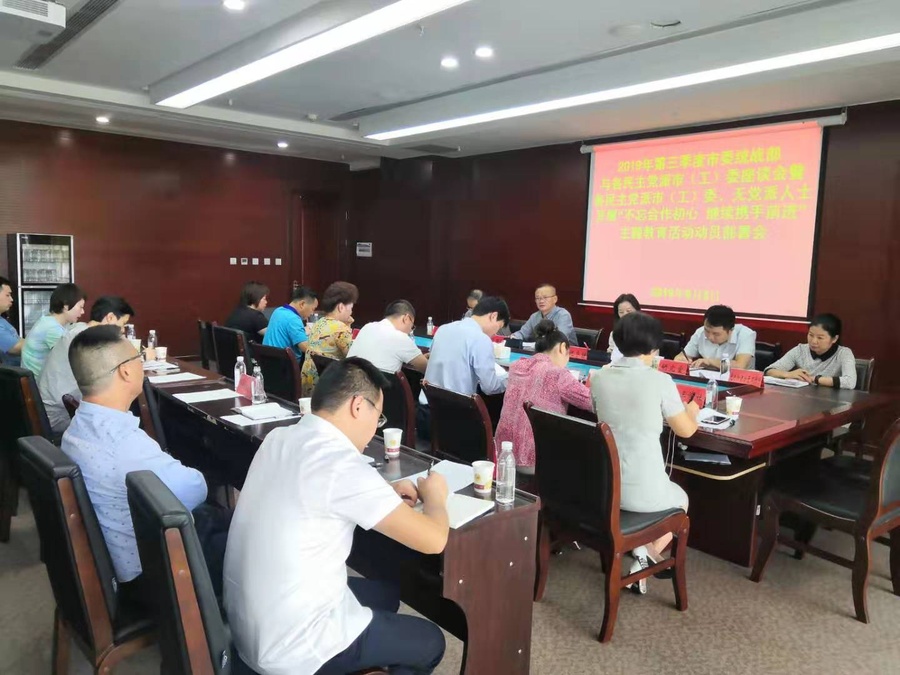 会议由市委统战部副部长祝华静主持。会议传达学习了中共中央批准的《关于支持各民主党派、无党派人士开展“不忘合作初心、继续携手前进”主题教育活动方案》主要精神;宣读我市支持各民主党派市(工)委、无党派人士开展“不忘合作初心、继续携手前进”主题教育活动工作方案;最后,中共遵义市委统战部常务副部长段开强同志讲话。他强调党派主委班子、各基层组织骨干要深化对多党合作初心、中国特色社会主义参政党性质地位的认识,激发履职热情,提高履职能力,从而发动和影响更多的成员积极参与主题教育活动,为我市打造西部内陆新高地和黔川渝结合部中心城市凝聚共识、汇聚力量。(九三学社遵义市委 冷馨)
