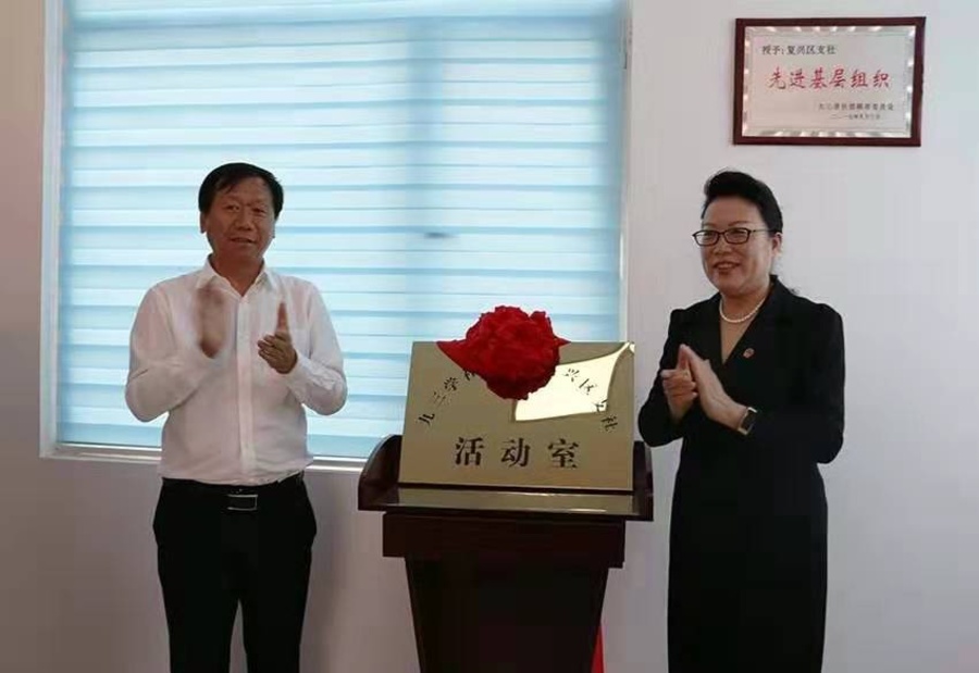 揭牌仪式由杨玉芳主持。随着侯华梅、潘利军揭开活动室牌匾的帷幕,复兴区支社活动室正式投入使用。