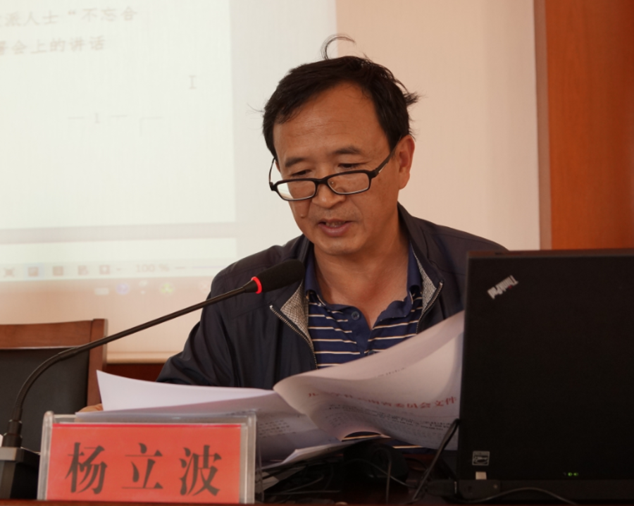 会上,专职副主委杨立波传达学习了九三学社中央武维华主席、社省委李学林主委安排部署“不忘合作初心,继续携手前进”主题教育活动动员部署会上的讲话;传达学习了中共玉溪市委副书记、市委统战部部长保明顺在各民主党派、无党派人士“不忘合作初心,继续携手前进”主题教育活动动员部署会上的讲话精神。宣读了《九三学社玉溪市委深入开展“不忘合作初心,继续携手前进”主题教育活动实施方案》,并对实施方案进行详细说明。