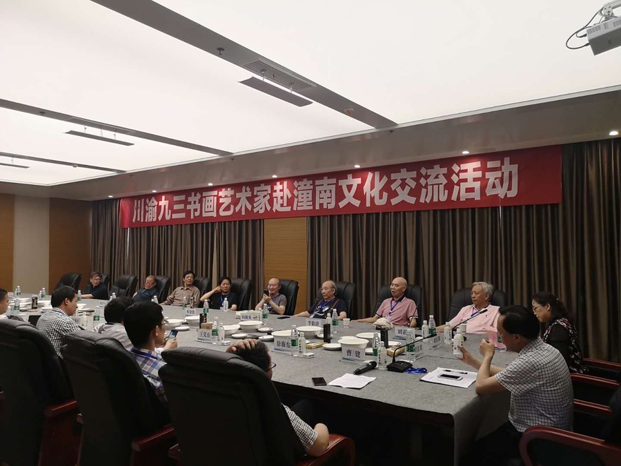 随着第二轮九三学社“川渝合作”启动,四川、重庆两地九三书画艺术家相约走进重庆潼南,开展文化交流活动。来自社省委书画院、社重庆市委书画院、以及潼南书法家协会和艺术家协会23位书画家应邀参加。